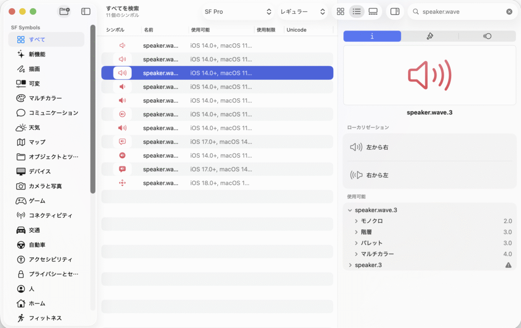 例) SF Symbolsで見つけた「speaker.wave.3」 をアプリで表示したい場合